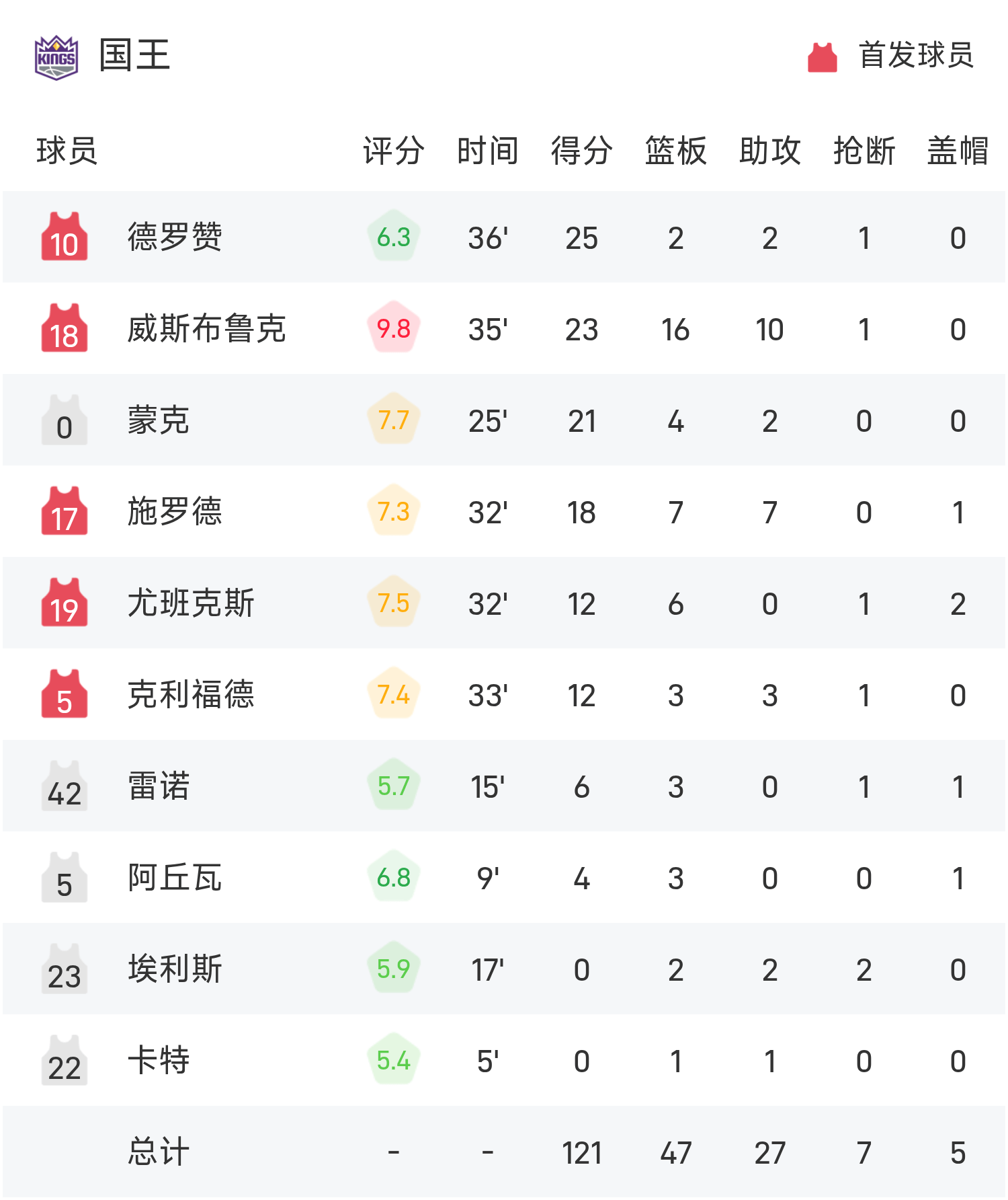 ในตอนท้ายของเกม Kings เอาชนะ Warriors 121-116