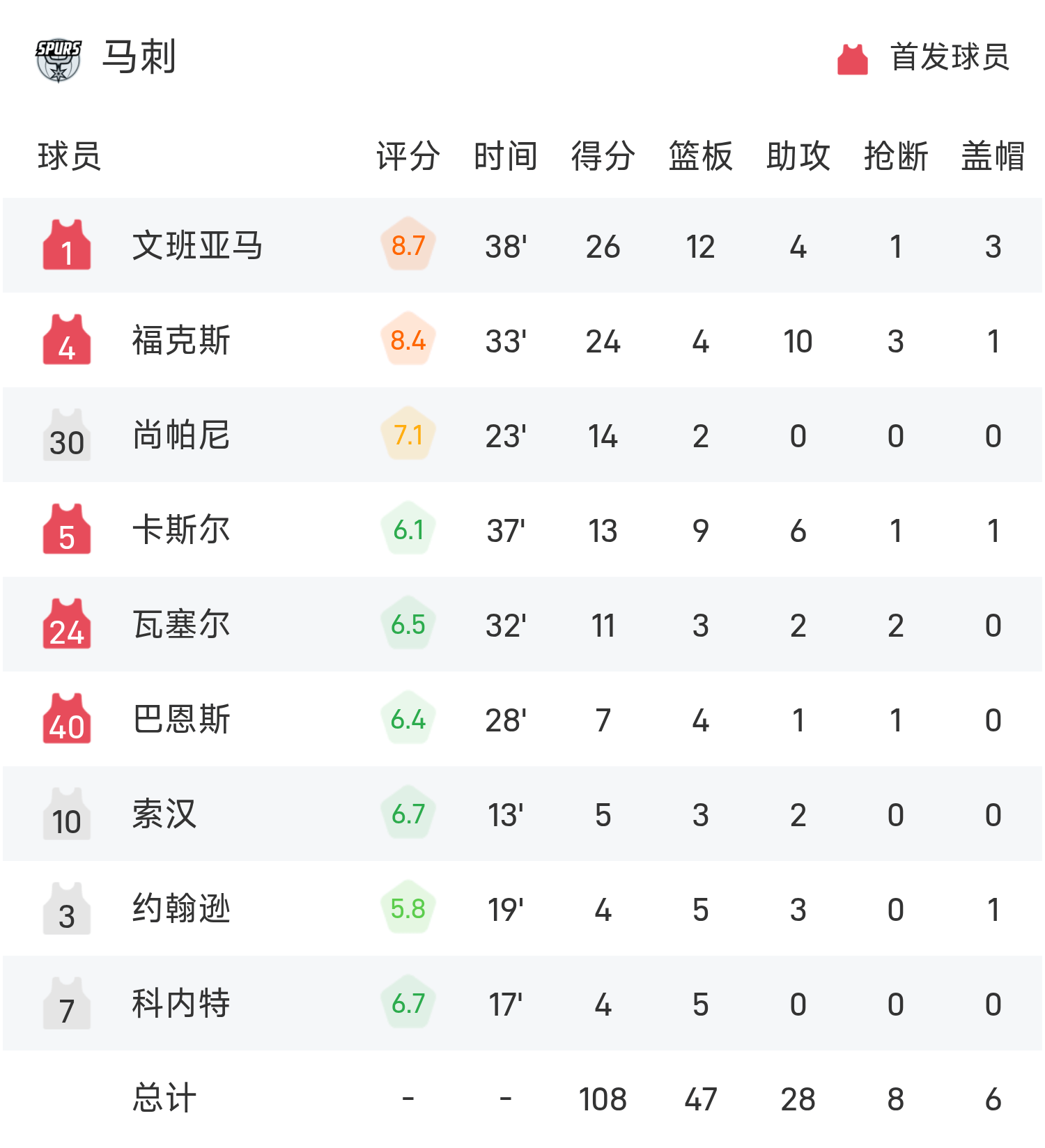 6686 กีฬา 15 พฤศจิกายน ข่าว ในการแข่งขัน NBA ประจำฤดูกาล 25/26 ของ NBA รอบแบ่งกลุ่ม สเปอร์สเผชิญหน้ากับวอร์ริเออร์ส จบเกม สเปอร์ส แพ้ วอร์ริเออร์ส 108-109 Curry ทำคะแนนสูงสุดในเกม 49 แต้ม 4 รีบาวน์และ 2 แอสซิสต์ นำทีม Warriors ไปสู่ชัยชนะ