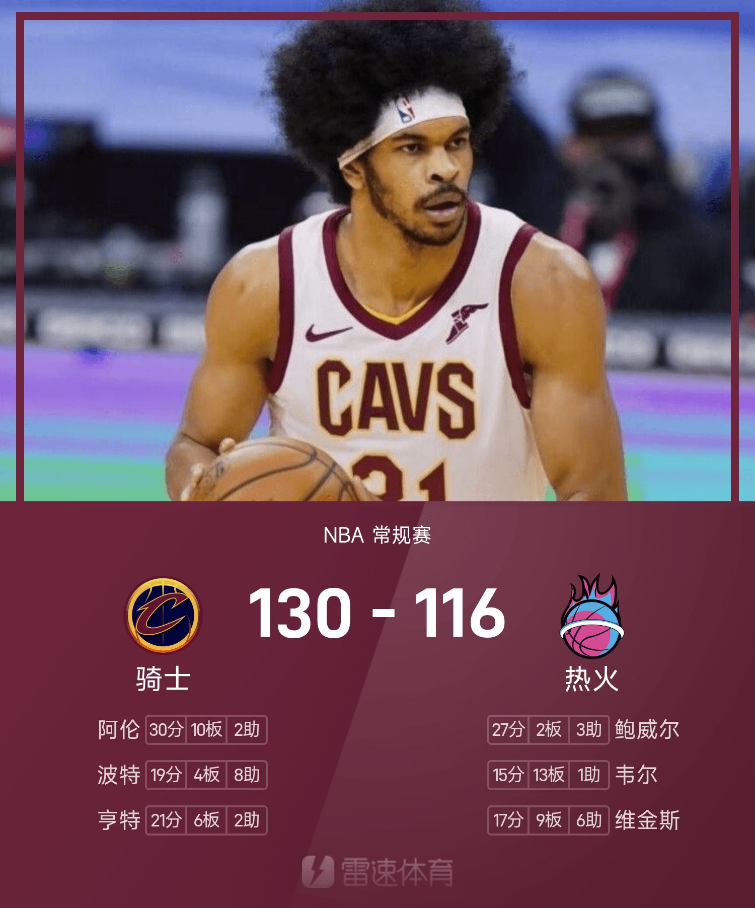 รายงาน NBA อัลเลน 30 แต้ม 10 รีบาวด์ คาวาเลียร์ส พลิกฮีต 130-116