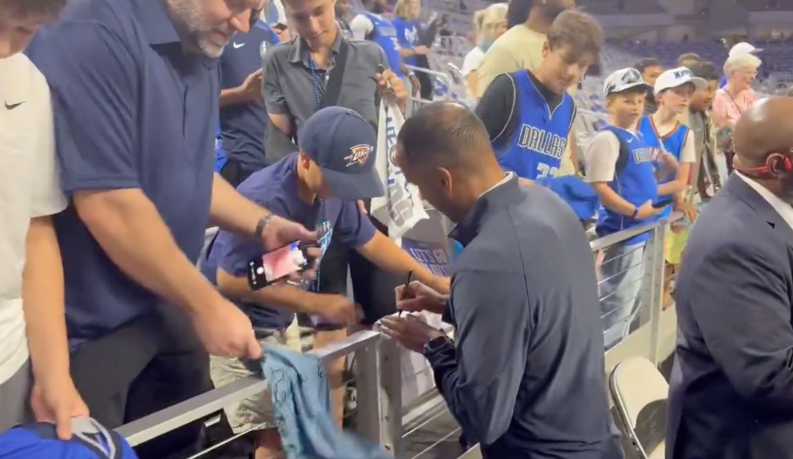 แฮร์ริสันเซ็นลายเซ็นและถ่ายรูปให้แฟน ๆ Mavericks โดยจงใจข้ามแฟน ๆ ที่สวมชุด Doncic