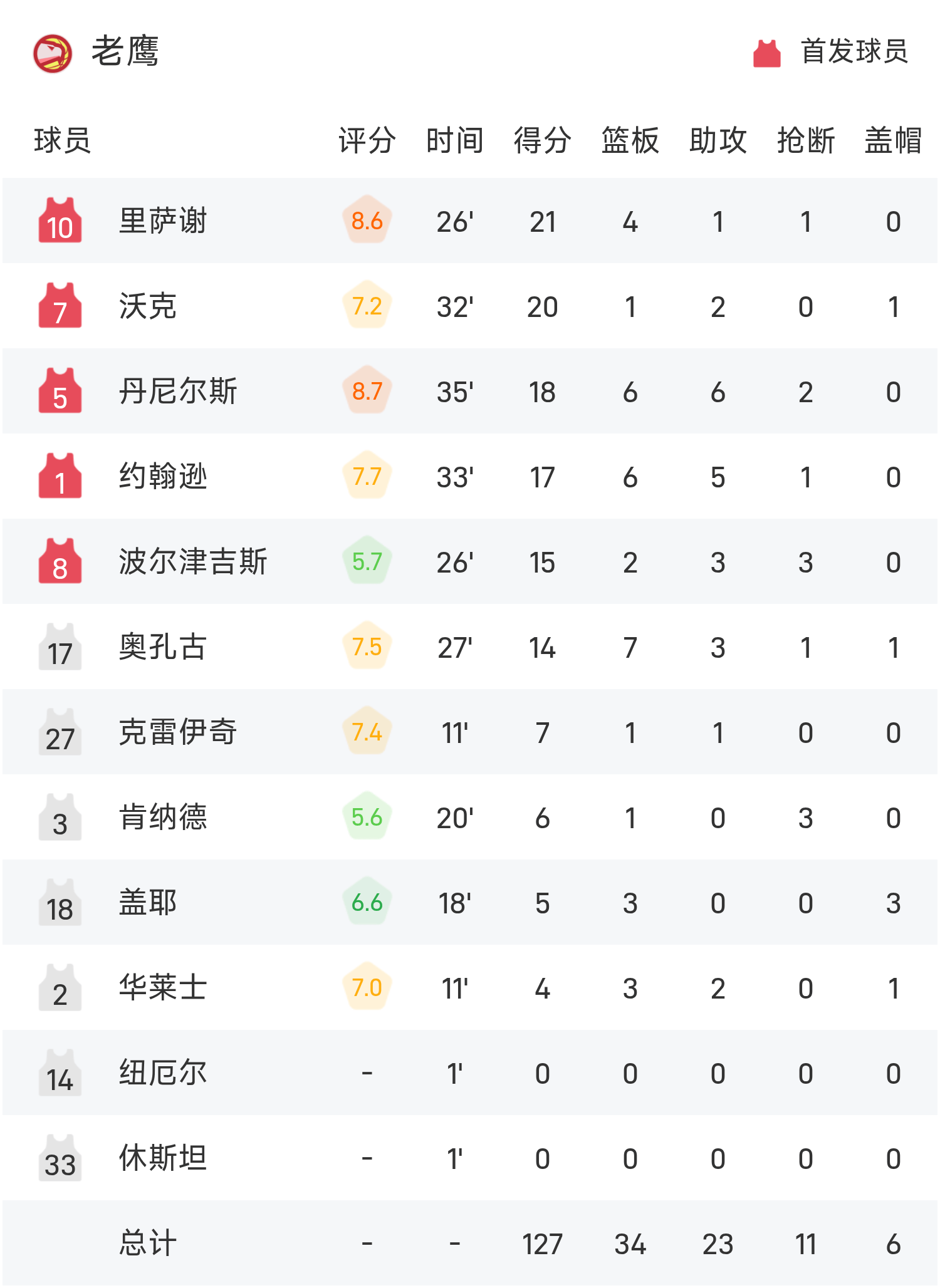 6686 กีฬา ข่าว 5 พฤศจิกายน ในฤดูกาลปกติของ NBA 25/26 ทีม Hawks พบกับทีม Magic จบเกม Eagles เอาชนะ Magic 127-112 ริซาเชทำคะแนนได้ 21 แต้ม 4 รีบาวด์ 1 แอสซิสต์เพื่อพาทีมคว้าชัยชนะ ส่วนบันเกโรทำคะแนนสูงสุดในเกมได้ 22 แต้ม 11 รีบาวด์และ 8 แอสซิสต์