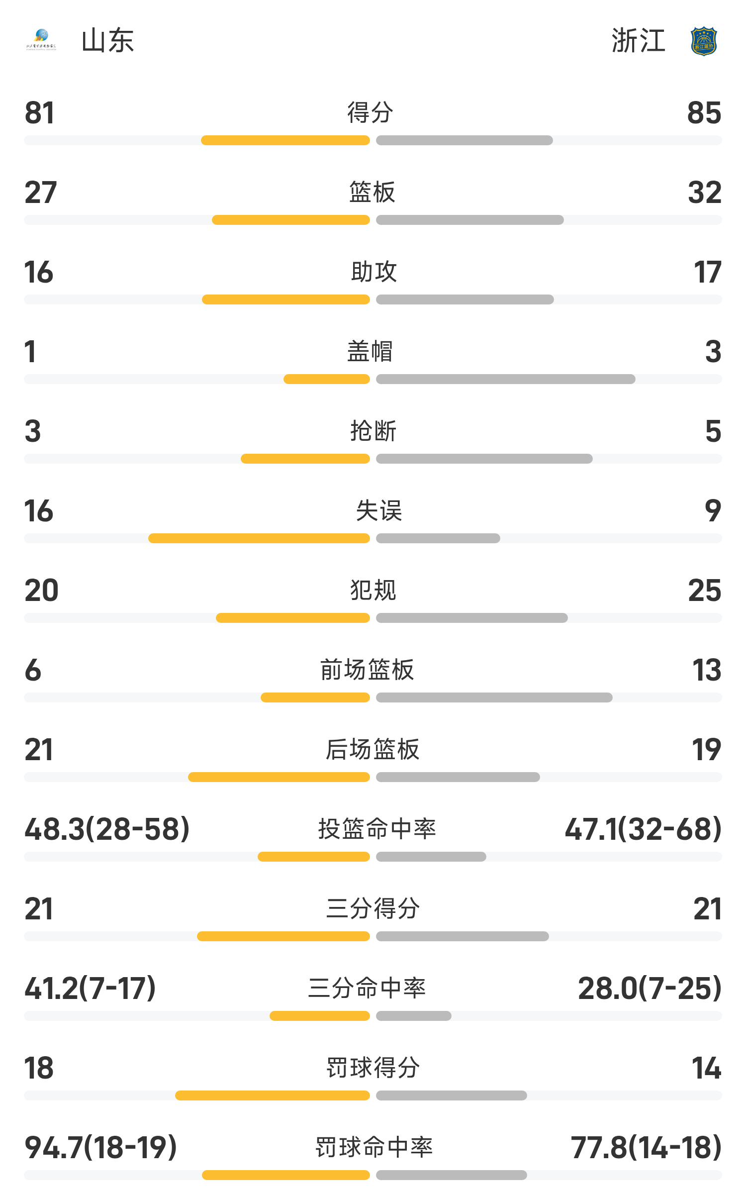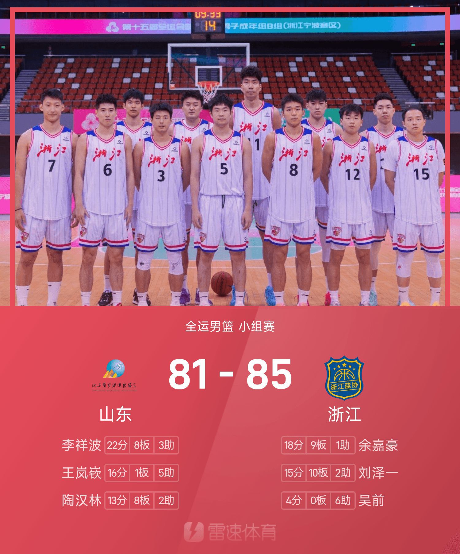 รายงานเกมบาสเกตบอลชายกีฬาแห่งชาติ หยู เจียห่าว มี 18 แต้ม 9 รีบาวด์ เจ้อเจียงเอาชนะซานตง 85-81 อย่างหวุดหวิด
