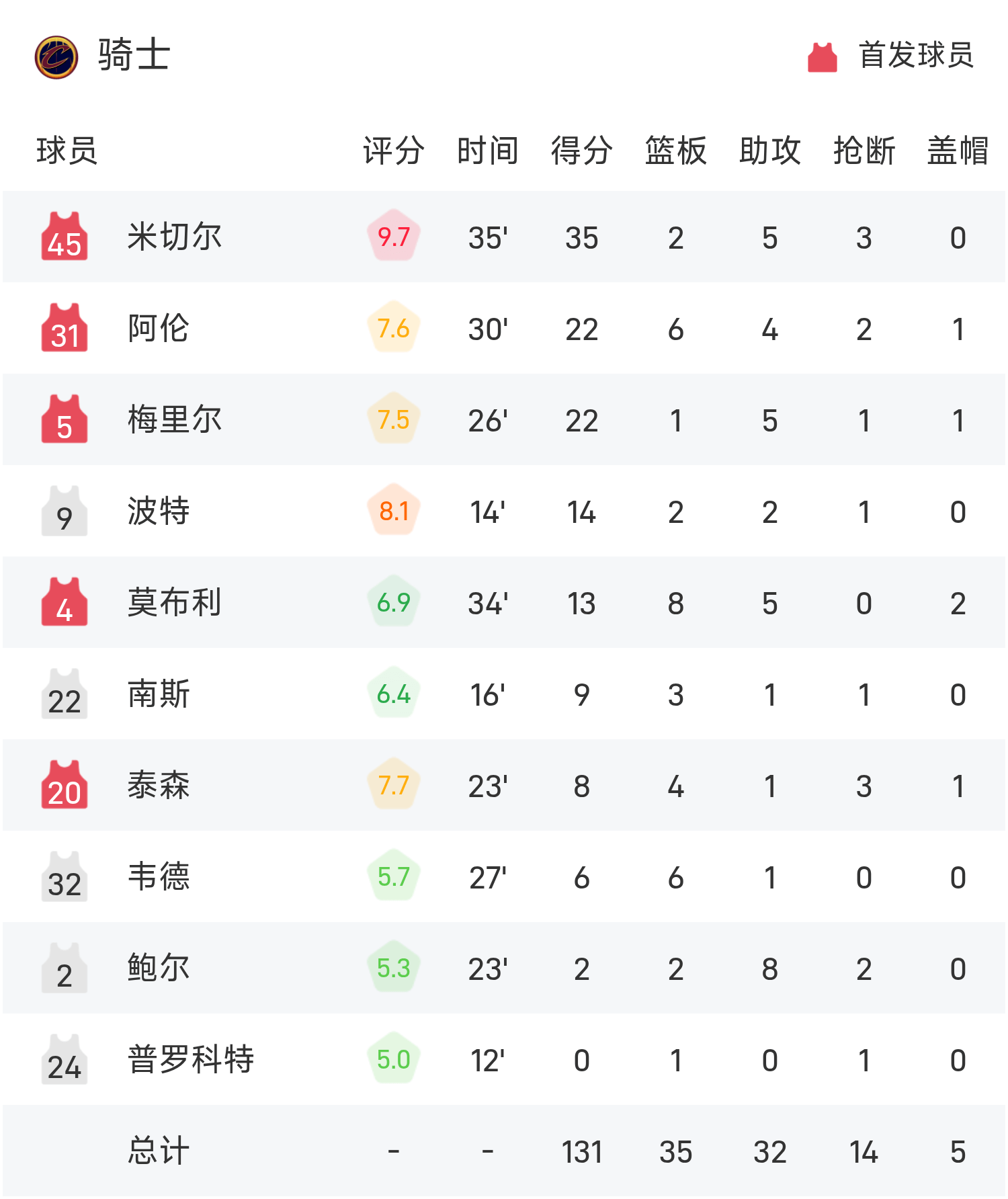 รายงาน NBA: มิทเชลล์ 35 แต้ม คาวาเลียร์ส เอาชนะ เน็ตส์ 131-124