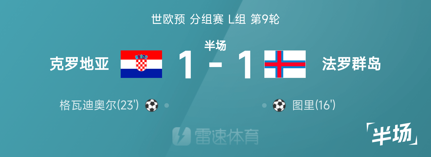 ครึ่งเวลาแรกของโลกยุโรป: ทูริทำประตู, กวาดิโอลตีเสมอ, โครเอเชีย 1-1 หมู่เกาะแฟโร