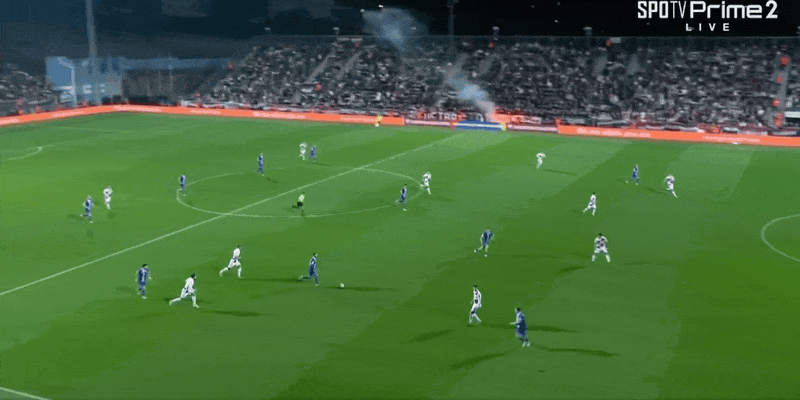 39' โมดริชลองยิงจากนอกเขตสามวินาที แต่บอลพลาดเตะมุมเล็กน้อย