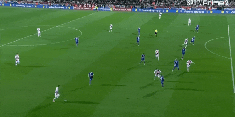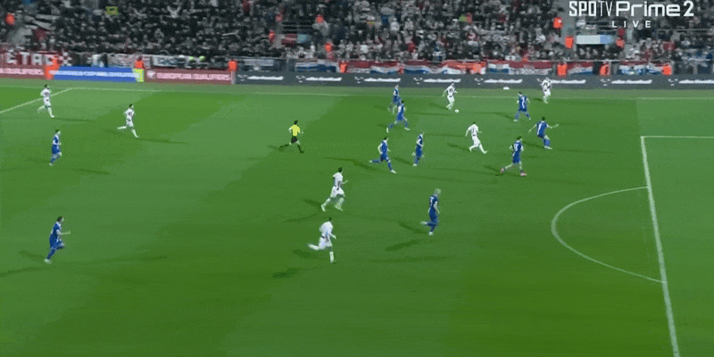 52' สตานิซิชจ่ายบอล บอลเข้าเขตโทษแล้วโหม่งของครามาริชเด้งออกเล็กน้อย