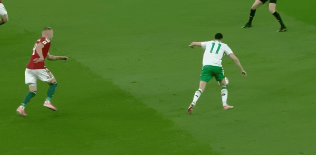 รายชื่อผู้เล่นตัวจริงของไอร์แลนด์: 1-เคลเลเฮอร์, 4-O'Shea, 22-คอลลินส์, 5-โอ'ไบรอัน, 2-โคลแมน, 6-คัลเลน, 8-โมลอนบี, 20-โอเบียร์น, 3-สเกล, 11-อาซาซ, 7-แพร์รอตต์ p>