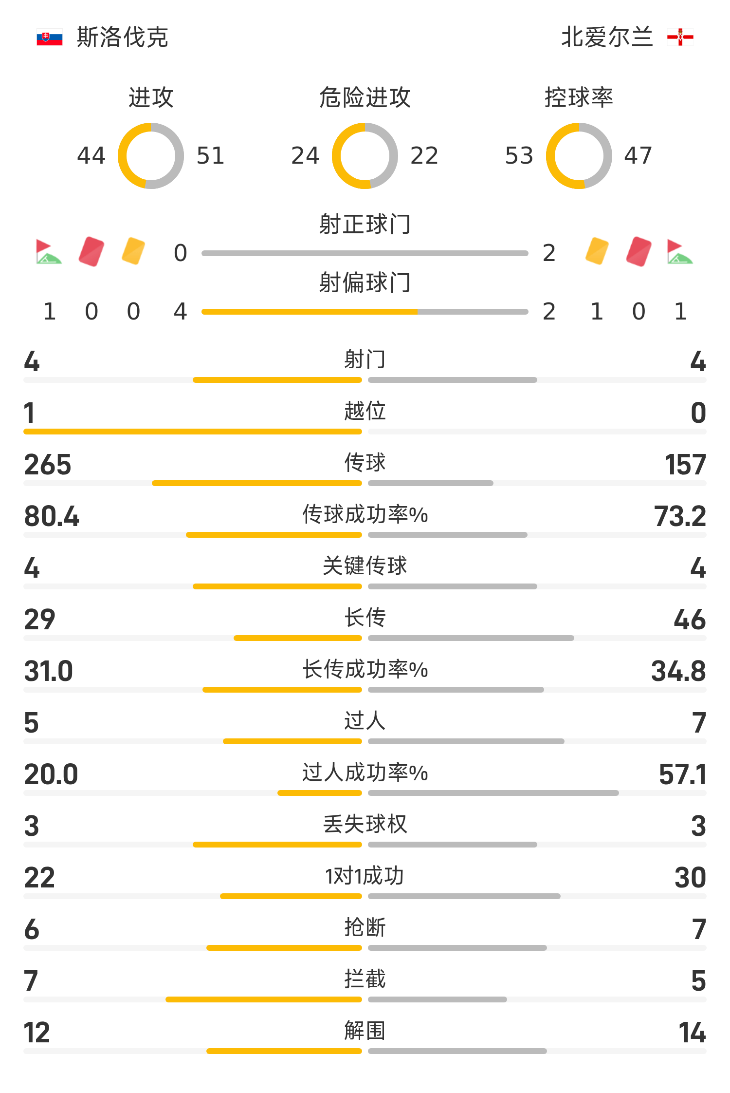 รายชื่อผู้เล่นตัวจริงของสโลวาเกีย: 1-Dubravka, 14-Skriniar, 6-Gombel, 16-Hanzko, 4-Obert, 22-Lobotka, 21-Bello, 17-Harraslin, 2 0-Duris, 19-Rigo, 15-สเตรค