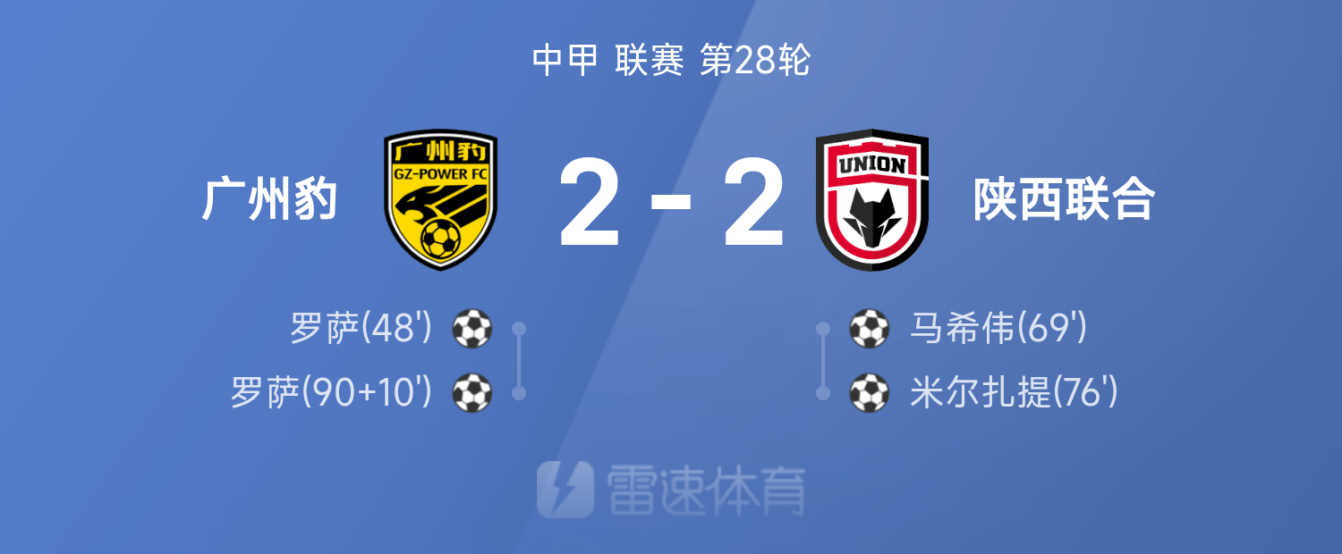 6686 กีฬา 26 ตุลาคม ในรอบที่ 28 ของลีคจีนครั้งที่ 25 กวางโจว ลีโอพาร์ด เสมอ 2-2 กับ Shaanxi United ตลอดทั้งเกม โรซ่าทำประตูได้ 2 ประตู ขณะที่หม่า ซีเว่ย และมีร์ซาติทำประตูได้