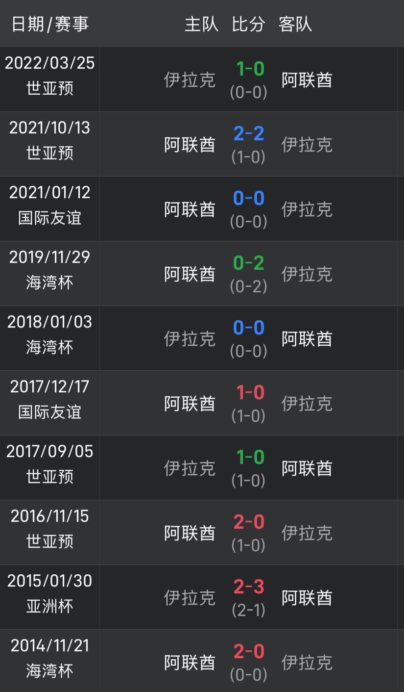 ข้อมูลปรากฏว่ายูเออีเล่นกับอิรักมาแล้ว 10 นัดหลังสุด โดยสถิติชนะ 4 เสมอ 3 แพ้ 3 ยิงได้ 10 ประตู และเสียไป 8 ประตู แม้ว่าดูเหมือนว่า UAE จะมีข้อได้เปรียบเล็กน้อย แต่ใน 5 เกมที่ผ่านมาระหว่างทั้งสองฝ่าย UAE เสมอ 3 แพ้ 2 และแพ้ 4 ครั้ง