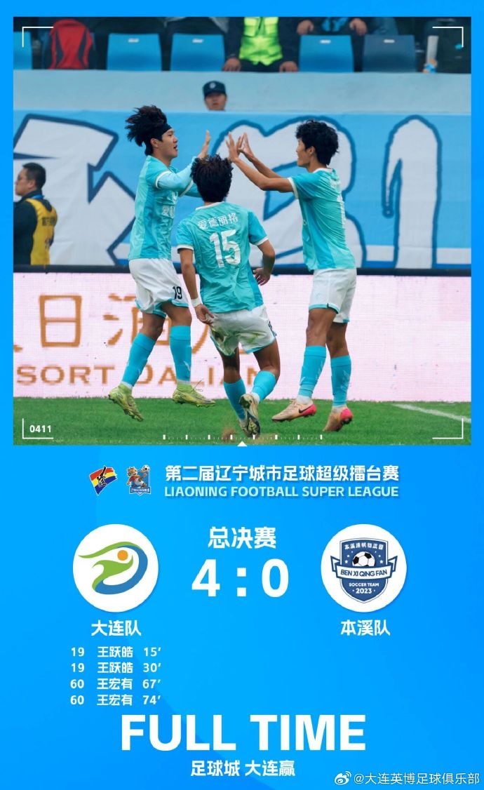 ในท้ายที่สุด ทีมต้าเหลียนเอาชนะทีมเปิ่นซี 4-0 ในบ้าน และคว้าแชมป์การแข่งขันฟุตบอลซูเปอร์อารีน่ารอบชิงชนะเลิศเมืองเหลียวหนิงครั้งที่สองประจำปี 2025!