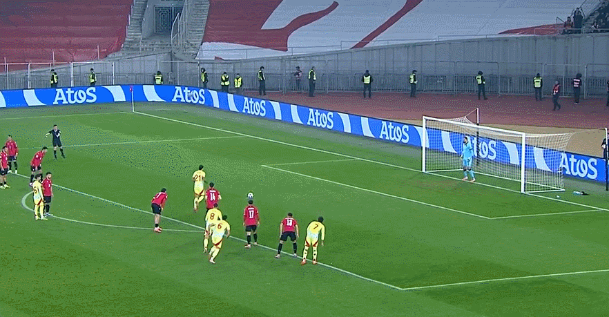 8' โอยาซาวารับบอลในโซนสามวินาทีแล้วตีเข้าประตูด้วยเท้าซ้าย ทำให้ลูกบอลพลาดเสาเล็กน้อย