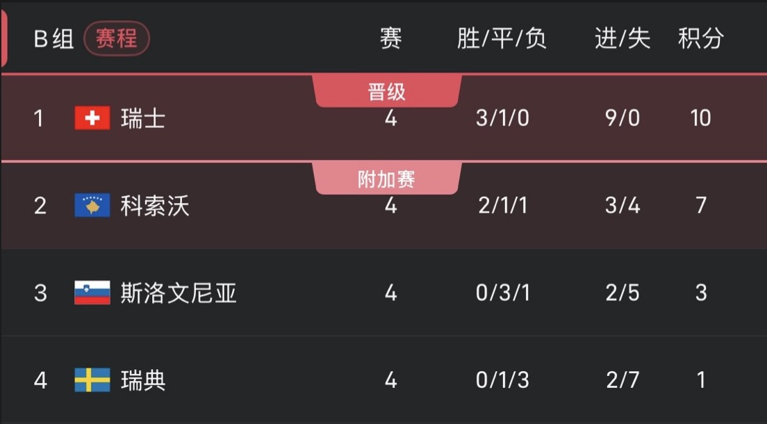 สวิตเซอร์แลนด์สามารถผ่านเข้ารอบได้หากเอาชนะสวีเดน และโคโซโวล้มเหลวในการเอาชนะสโลวีเนีย