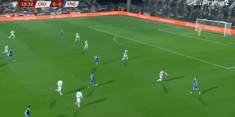 52' สตานิซิชจ่ายบอล บอลเข้าเขตโทษแล้วโหม่งของครามาริชเด้งออกเล็กน้อย