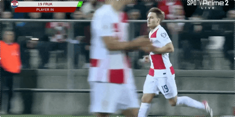 รายชื่อผู้เล่นตัวจริงของโครเอเชีย: 1-ลิวาโควิช, 2-สตานิซิช, 4-กวาดิโอล, 22-วอสโควิช, 10-โมดริช (62'13-วลาซิช), 14-เปริซิช (71'16-ออร์ซิช), 9-ครามาริช, 15-ปาซาลิช (46'6-ซู ทัลโลว์), 7-ปาซาลิช (62'19-ฟลุก), 17-ซูซิช, 11-มูซา (74'21-มาตาโนวิช)