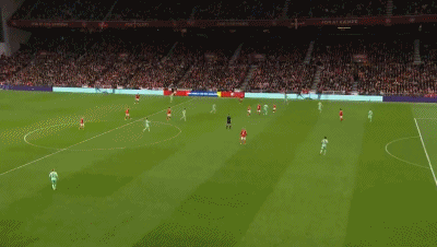51' เดมส์จ่ายบอลสูงเข้าไปในเขตโทษ และวินเดอร์ยิงประตูในสามวินาที พื้นที่ถูกรบกวน