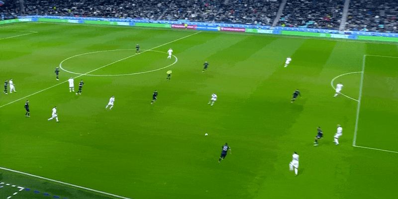 26' เร็กซ์ เบก้าไม่มีเครื่องหมายและพยายามเตะพื้น โอบลัคล้มลงกับพื้นและยึดลูกบอล