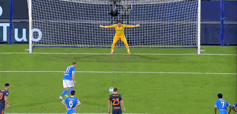 15’ เลาตาโรมีโอกาสที่ดีเยี่ยมในโซนสามวินาที และผู้รักษาประตูเนเปิลส์เซฟลูกยิงได้