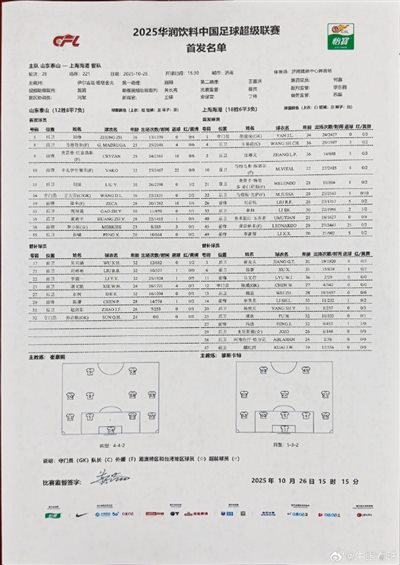 6686 Sports 26 ตุลาคม บล็อกเกอร์ "Bull Eye Watch" เปิดเผยว่า ซานตง ไท่ซาน เปลี่ยนรายชื่อตัวจริงในเกมที่พบกับไห่กังชั่วคราว หลุยส์ โลเปซ ถูกไล่ออก และ เผิง เซียว มาเป็นตัวจริง