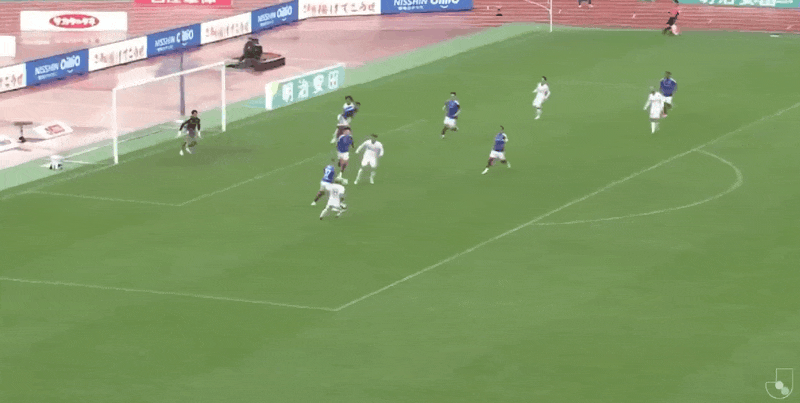 2' ไดกิ ซูกะ ส่งบอลไปทางเขตสามวินาที และ โช ซาซากิ โหม่งบอลให้กว้าง